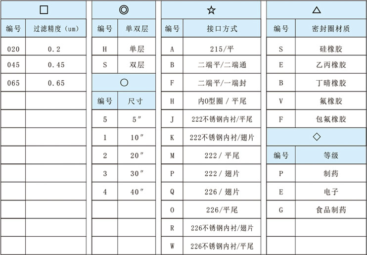 ◇ 密封圈:見濾芯選型表